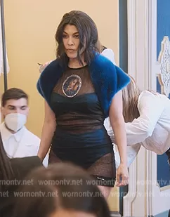 Kourtney Kardashian (played by Kourtney Kardashian) on The Kardashians on Hulu was spotted wearing this blue fur crop top on The Kardashians on episode 'What's More American Than Marilyn Monroe?' (2x07) in Nov 2022. Kourtney's Top is the Blue Mink Fur Shrug Jacket by Dolce and Gabbana.