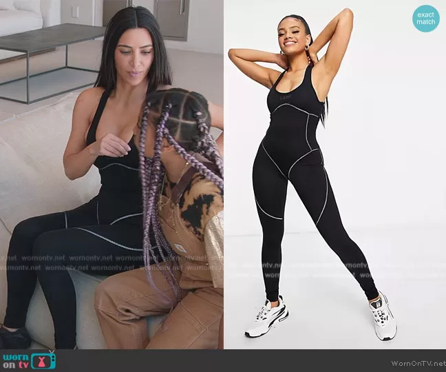 Kim Kardashian (played by Kim Kardashian) on The Kardashians on Hulu was spotted wearing this black contour jumpsuit on The Kardashians on episode 'What's More American Than Marilyn Monroe?' (2x07) in Nov 2022. Kim's Jumpsuit is the Motif contour jumpsuit in black by Lapp.