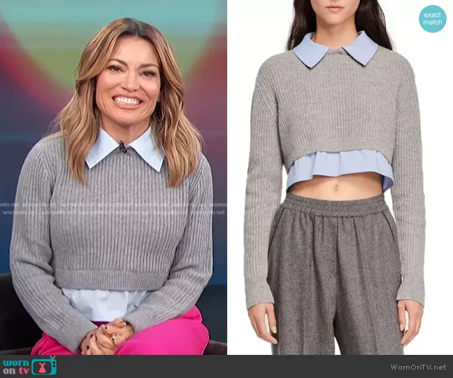 Sandro Layered Crop Wool Sweater worn by Kit Hoover on Access Hollywood