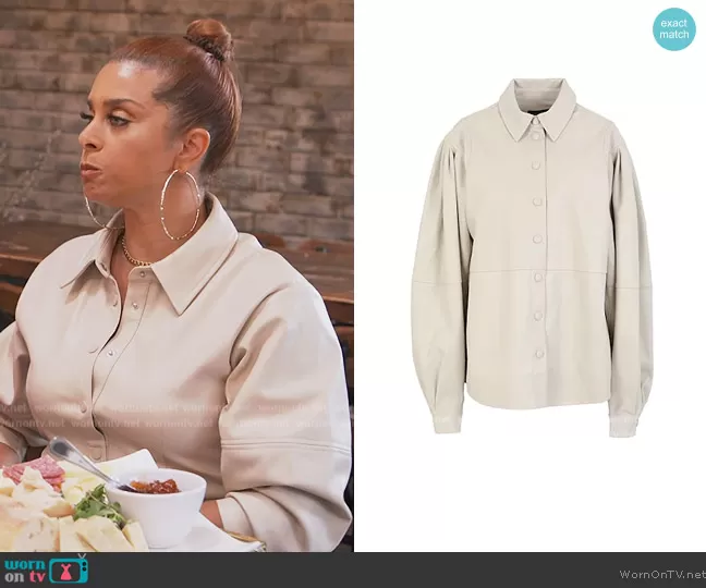 Robyn Dixon on The Real Housewives of Potomac on Bravo was spotted wearing this white leather jacket and boots on The Real Housewives of Potomac on episode 'The Burn Session' (7x05) in Nov 2022. Robyn's Jacket is the Idol Cream PU Seamed Shirt by Topshop . Robyn's Shoes is the Maryana Pointed Toe Boot by Schutz.