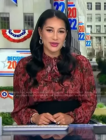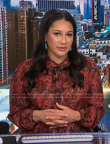 Paige Elynne Floral Tie-Neck Blouse worn by Morgan Radford on NBC News Daily