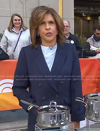Hoda Kotb on Today on NBC was spotted wearing this navy double breasted coat on Today on Nov 09 2022's episode. Hoda's Coat is the Double-Breasted Topcoat in Wool Cashmere by J. Crew.