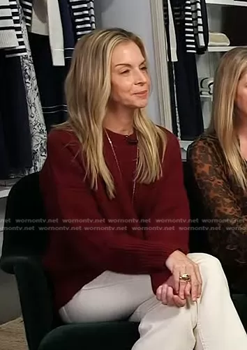 on Today on NBC was spotted wearing this burgundy ribbed sweater on Today on Nov 09 2022's episode. 's Sweater is the Toujours Sweater in Burgundy by La Ligne.