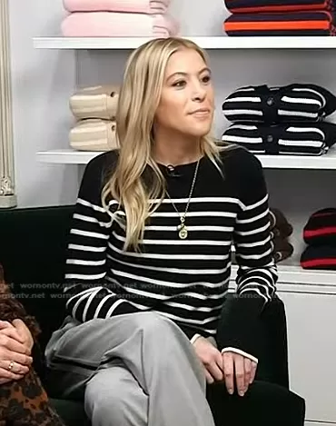 on Today on NBC was spotted wearing this black striped sweater on Today on Nov 09 2022's episode. 's Sweater is the AAA Lean Lines Sweater by La Ligne.
