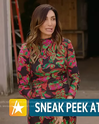 on Access Hollywood on NBC was spotted wearing this floral mesh dress on Access Daily on Nov 09 2022's episode. 's Dress is the Shoulder Pad Ruched Dress by Zara.