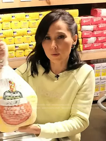 Vicky Nguyen on Today on NBC was spotted wearing this yellow sweatshirt on Today on Nov 17 2022's episode. Vicky's Sweater is the Voila Logo Sweatshirt by Whistles.