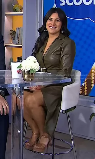on Today on NBC was spotted wearing this green belted leather dress on Today on Nov 10 2022's episode. 's Dress is the Belted Faux Leather Dress in Khaki by Zara.