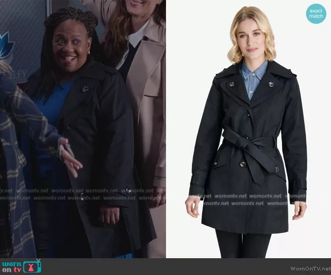 Miranda Bailey (played by Chandra Wilson) on Greys Anatomy on ABC was spotted wearing this navy double breasted coat on Greys Anatomy on episode 'Thunderstruck' (19x06) in Nov 2022. Miranda's Coat is the Double Breasted Belted Trench Coat by London Fog.
