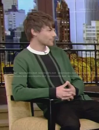 on Live with Kelly and Mark on Disney ABC Home Entertainment was spotted wearing this green striped sweater on Live with Kelly and Ryan on Nov 14 2022's episode. 's Sweater is the Striped Cotton and Lyocell-Blend Sweater by Mr P..