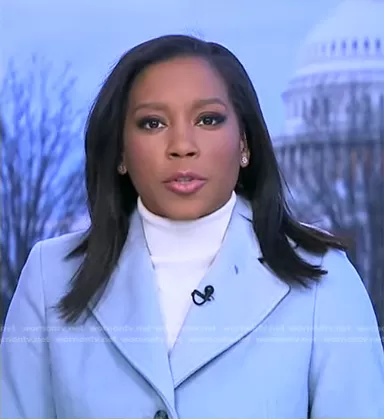 Rachel Scott on Good Morning America on ABC was spotted wearing this blue coat on Good Morning America on Feb 08 2023's episode. Rachel's Coat is the Mid-Length Coat by Calvin Klein.