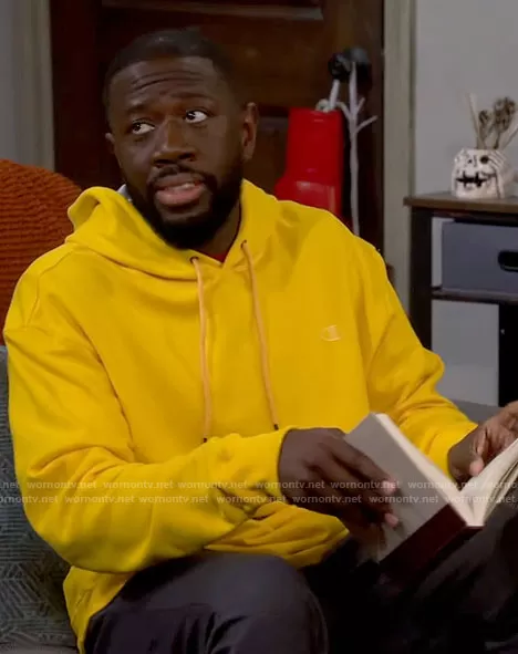 Malcom (played by Sheaun McKinney) on The Neighborhood on CBS was spotted wearing this yellow hoodie on The Neighborhood on episode 'Welcome to the Working Week' (5x07) in Nov 2022. Malcolm's Sweatshirt is the Powerblend Fleece Hoodie by Champion.