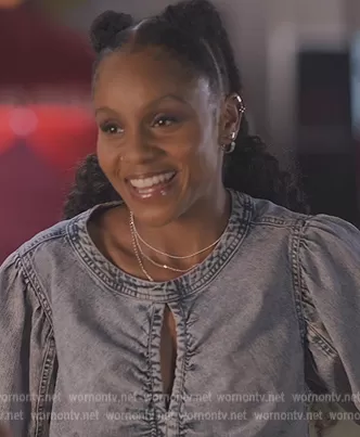 Simone (played by Geffri Hightower) on All American Homecoming on CWTV was spotted wearing this denim crop top on All American Homecoming on episode 'No More Drama' (2x05) in Nov 2022. Simone's Top is the x We The Free Eloise Denim Crop Top by Free People.