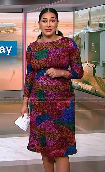 Morgan Radford on NBC News Daily on NBC was spotted wearing this multicolor printed dress on NBC News Daily on Apr 25 2024's episode. Morgan's Dress is the Rainbow Mix Rib Stretch Organic Cotton Dress by Farm Rio.
