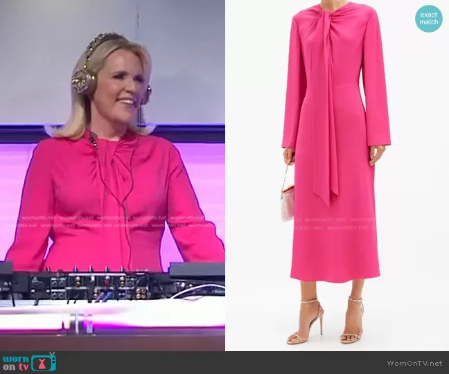 on Today on NBC was spotted wearing this red tie neck dress on Today on Nov 16 2022's episode. 's Dress is the Tie-Neck Cady Midi Dress by Valentino.