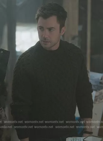 (played by Matt Long) on Manifest on NBC was spotted wearing this green cable knit sweater on Manifest on episode 'Squawk' (4x05) in Nov 2022.