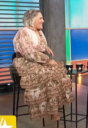 on Access Hollywood on NBC was spotted wearing this floral tiered dress on Access Hollywood on Nov 16 2022's episode. 's Dress is the Lyre Tiered Maxi Dress by Zimmermann.