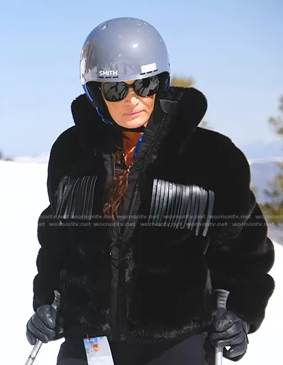 Lisa Barlow on The Real Housewives of Salt Lake City on Bravo was spotted wearing this black fringed jacket and skit pants on The Real Housewives of Salt Lake City on episode 'RSVPlease' (3x08) in Nov 2022. Lisa's Top is the Sky Half-Zip Star Top by Goldbergh . Lisa's Jacket is the Cowboy Faux-Fur Ski Jacket by Goldbergh . Lisa's Pants is the Rocky Ski Trousers by Goldbergh . Lisa's Sunglasses is the Square Chain Sunglasses 5210-Q by Chanel.