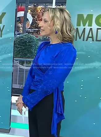 on Today on NBC was spotted wearing this blue satin draped top on Today on Nov 18 2022's episode. 's Top is the Allure Top by Ronny Kobo.