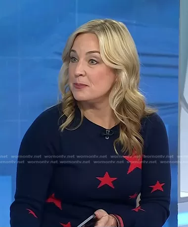 on Today on NBC was spotted wearing this navy and red star sweater on Today on Nov 18 2022's episode. 's Sweater is the Samira Star Print Sweater by Hobbs London.