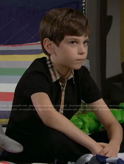 Douglas Forrester (played by Henry Samiri) on The Bold and the Beautiful on CBS was spotted wearing this black polo shirt with plaid collar on The Bold and the Beautiful on Nov 18 2022's episode. 's Shirt is the Johane Vintage Check-Trim Polo Shirt by Burberry.