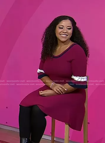 Draper James Bell Sleeve Sweater Dress in Deep Berry worn by Arianna Davis on Today
