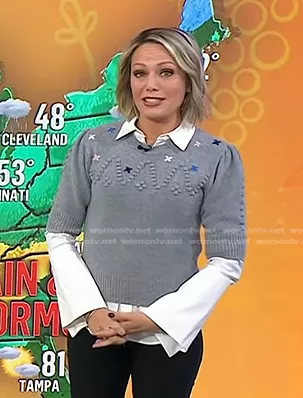 Dylan Dreyer on Today on NBC was spotted wearing this grey bobble sweater on Today on Nov 22 2022's episode. Dylan's Sweater is the Bubble Stitch Sweater by See by Chloe.