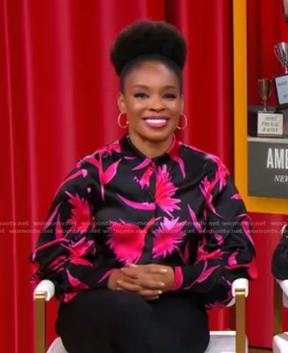 Saloni Joana Floral-Print Silk-Satin Shirt worn by Amber Ruffin on Good Morning America