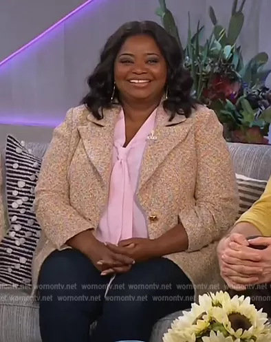 St John Multi Boucle Sparkle Tweed Jacket worn by Octavia Spencer on The Kelly Clarkson Show