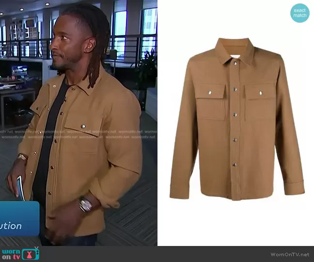 Sandro Single-Breasted Shirt Jacket worn by Scott Evans on Access Hollywood