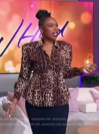 Jennifer Hudson on The Jennifer Hudson Show on FOX was spotted wearing this leopard print blouse on The Jennifer Hudson Show on Nov 23 2022's episode. Jennifer's Top is the Diva leopard-print silk-blend charmeuse shirt by Dolce & Gabbana.