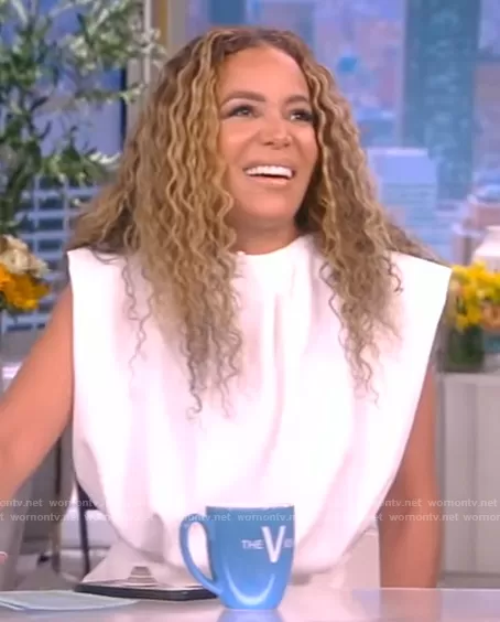 Sunny Hostin on The View on ABC was spotted wearing this white shoulder padded bodysuit on The View on Oct 29 2022's episode. Sunny's Bodysuit is the Maeve Padded-Shoulder T-Shirt Bodysuit by Et Ochs.
