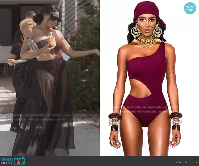Mia Thornton on The Real Housewives of Potomac on Bravo was spotted wearing this sheer skirt and swimsuit on The Real Housewives of Potomac on episode 'Queen vs. Queen' (7x08) in Nov 2022. Mia's Swimsuit is the Nikith One-Piece Swimsuit by Bfyne . Mia's Skirt is the Pleated High Waisted Sheer Maxi Skirt by Soho Girl.