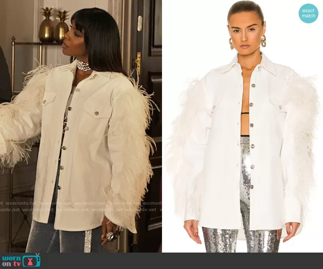 Misty (played by Kelly Rowland) on The Equalizer on CBS was spotted wearing this white feather sleeve jacket on The Equalizer on episode 'Paradise Lost' (3x07) in Nov 2022. 's Jacket is the Feather Sleeve Denim Shirt by David Koma.