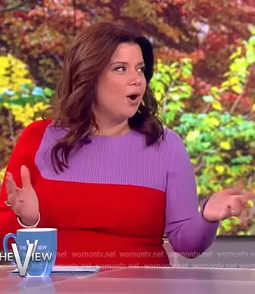 Ana Navarro on The View on ABC was spotted wearing this colorblock ribbed dress on The View on Nov 28 2022's episode. Ana's Dress is the Colorblocked Long Sleeve Maxi Dress by Victor Glemaud.