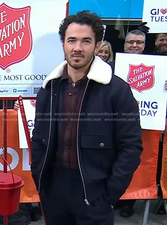 on Today on NBC was spotted wearing this navy shearling collar jacket on Today on Nov 29 2022's episode. 's Jacket is the Ben Shearling-Trimmed Blouson Jacket by A.P.C..