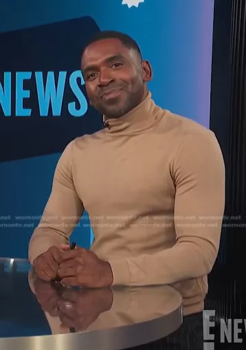 Justin Sylvester on E! News on E! was spotted wearing this beige turtleneck sweater on E! News on Feb 20 2023's episode. Justin's Sweater is the Musso-P Slim Fit Turtleneck Sweater in Medium Beige by Boss.