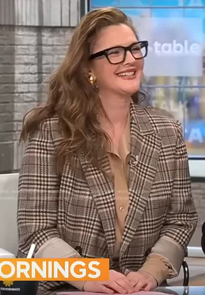 Max Mara Studio Dodo Flannel Blazer worn by Drew Barrymore on CBS Mornings