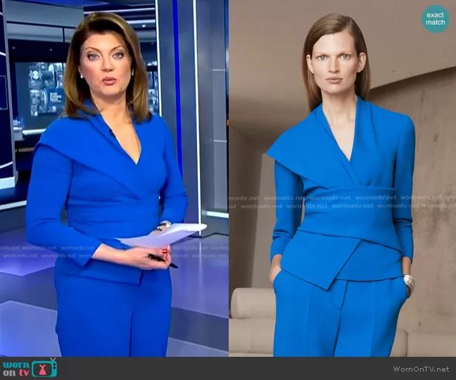 The Fold Adelaide Top in Cerulean Blue worn by Norah O'Donnell on CBS Evening News