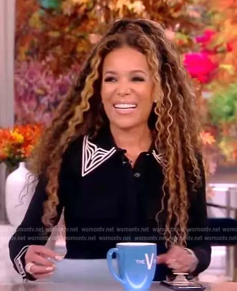 Sunny Hostin on The View on ABC was spotted wearing this black embroidered collar shirt on The View on Dec 01 2022's episode. Sunny's Top is the Cloque Jacquard Knit Button-Up Shirt by Proenza Schouler.