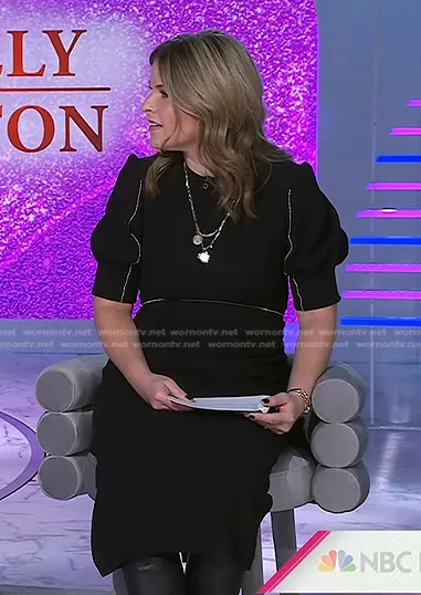 Jenna Bush Hager on Today on NBC was spotted wearing this black embellished puff sleeve dress on Today on Dec 01 2022's episode. Jenna's Dress is the Metal Bead-Embellished Midi-Dress by Lela Rose.