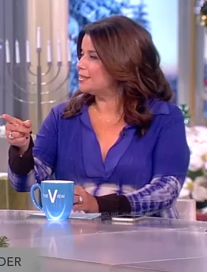 Ana Navarro on The View on ABC was spotted wearing this blue tie dye knit dress on The View on Dec 02 2022's episode. Ana's Dress is the Tie-dye knitted dress by Proenza Schouler.