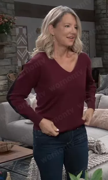Reiss Isabella Sweater in Berry/Black worn by Nina Reeves (Cynthia Watros) on General Hospital