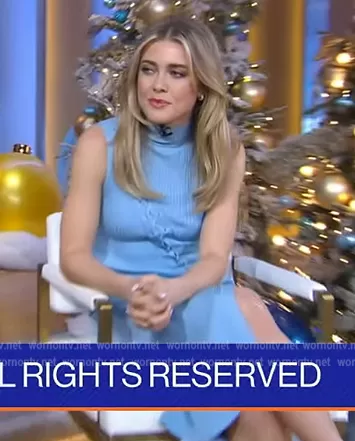 on Good Morning America on ABC was spotted wearing this blue lace-up dress on Good Morning America on Dec 02 2022's episode. 's Dress is the Ava Midi Dress by Jonathan Simkhai.