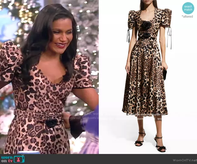 on The View on ABC was spotted wearing this leopard print puff sleeve dress on The View on Dec 05 2022's episode. 's Dress is the Leopard Puff-Sleeve Belted Silk Twill Midi Dress by Rodarte.