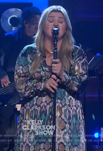 Zara Printed Midi Dress worn by Kelly Clarkson on The Kelly Clarkson Show