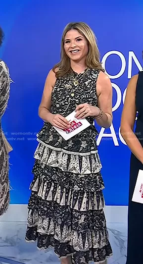 Jenna Bush Hager on Today on NBC was spotted wearing this printed tiered dress on Today on Dec 06 2022's episode. Jenna's Dress is the Ariah Tiered Printed Midi-Dress in Rainforest by Ulla Johnson.