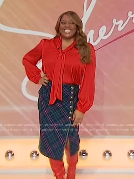Sherri Shepherd on Sherri on FOX was spotted wearing this blue plaid knit skirt on Sherri on Dec 07 2022's episode. Sherri's Skirt is the Checked Skirt by Saint Laurent.