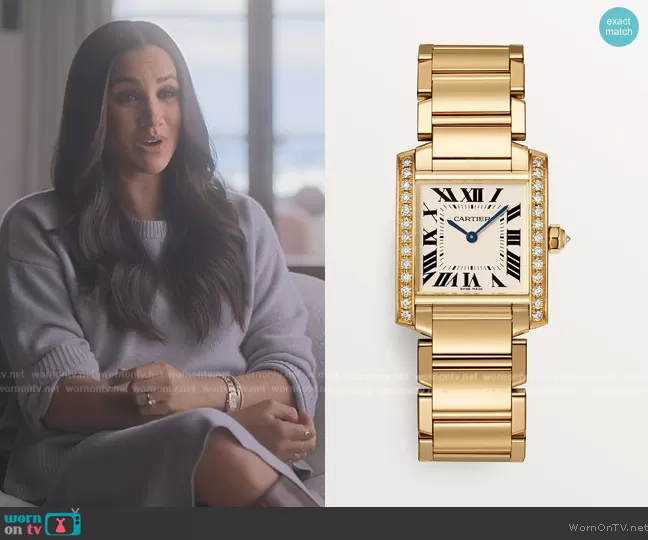 Cartier Tank Francaise Watch worn by Meghan Markle on Harry and Meghan