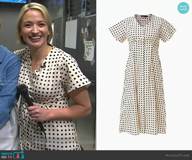 on Today on NBC was spotted wearing this white printed dress on Today on Dec 08 2022's episode. 's Dress is the Studio Empire Waist Dress by Sare.