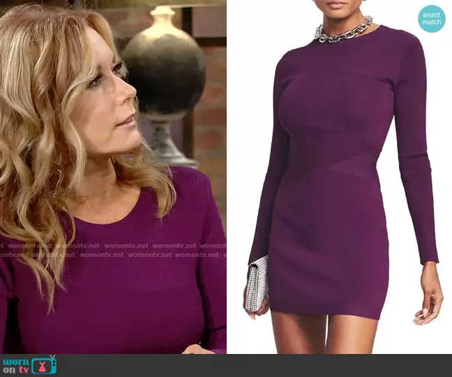 Lauren Fenmore (played by Tracey Bregman) on The Young and the Restless on CBS was spotted wearing this magenta long sleeve mini dress on The Young and the Restless on Dec 08 2022's episode. Lauren's Dress is the Sonja Dress by Retrofete.